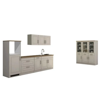 Die Küchenzeile Rom von Held Möbel mit hochwertigen MDF-Fronten im Landhaus-Stil begeistert durch ihr zeitloses Design und viel Stauraum auch in beengten Wohnverhältnissen. Durch die autarken E-Geräte, welche nicht im Lieferumfang enthalten sind, ist eine individuelle Ausrichtung der Küche möglich und selbstverständlich erweiterbar durch die weiteren Produkte der Serie Rom.