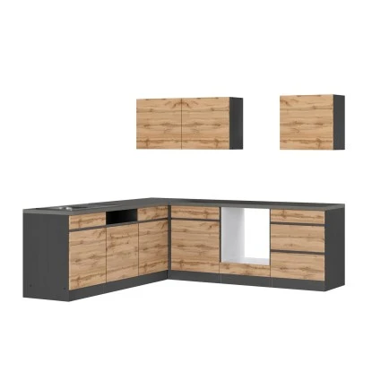 Die Winkelküche Turin von Held Möbel mit hochwertigen MDF-Fronten begeistert optisch durch die klaren Linien sowie die zweifarbige Gestaltung. Da die Schränke in zwei Farbkombinationen verfügbar sind, können Sie die Küche im Mix-and-Match Stil erweitern. Zusätzliche Akzente werden durch die 38 mm starke Arbeitsplatte im Beton Dekor gesetzt.