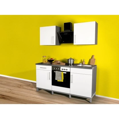Die Menke Küchenzeile Rack-Time II mit einer Breite von 180 cm überzeugt mit moderner Optik und ein unschlagbares Preis-Leistungsverhältnis. Die Küche besticht insbesondere durch die Kombination aus Design, Funktion und Robustheit. Alle Möbelteile werden in Deutschland gefertigt und zeichnen sich durch hochwertige Qualität aus. Die teilweise mit Metall-Schubladen ausgestatteten Unterschränke und die Oberschränke bieten viel Stauraum für Ihre Küchenutensilien. Die Scharniere sind mit Dämpfung ausgestattet. Alle Unterschränke werden auf einem Metallgestell montiert. Zudem sorgen die modernen Elektrogeräte für hohen Komfort beim Kochen. Die Küchenzeile besteht aus Backofen mit Glaskeramikkochfeld, Schräghaube, Spüle mit Unterschrank, einem weiteren Unterschrank mit Schublade, Herdumbau und Oberschränken. Die Arbeitsplatte wird ohne Ausschnitte in einer Stärke von 38 mm geliefert.