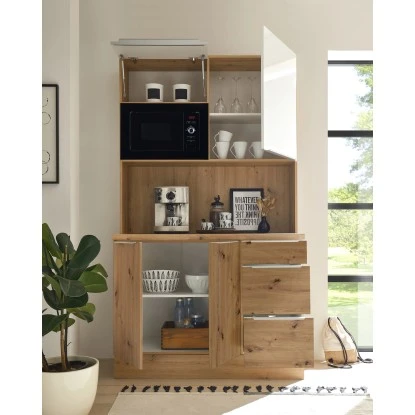 Respekta Buffet Mit Mikrowelle Zu Küchenzeile Marleen Artisan-Eiche Weiß Hochgl.