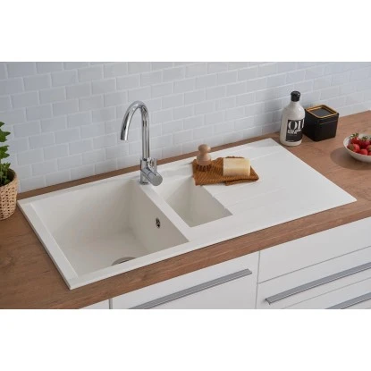 + Mineraliteinbauspüle mit 1,5 Becken und Abtropffläche