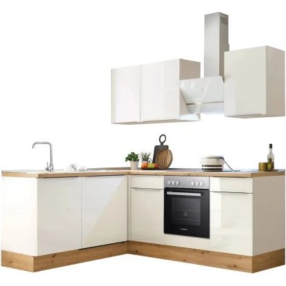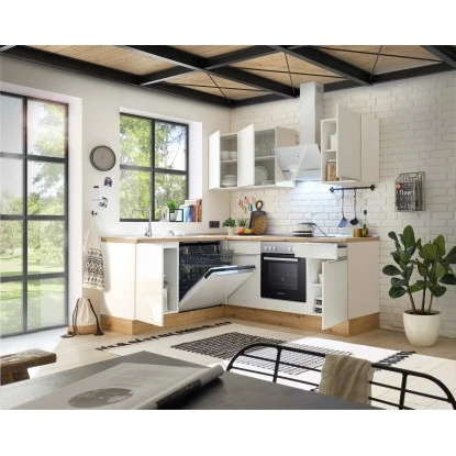 Die Respekta Küchenzeile Marleen ist in verschiedenen Farben erhältlich und schafft durch den Materialmix von Elementen in Holz- und Griffleisten in Aluminiumoptik ein modernes Design. Die Schränke bieten Ihnen viel Stauraum und schließen dank der Soft Close Funktion besonders geräuscharm. Unebenheiten im Boden gleichen Sie mit den höhenverstellbaren Füßen ganz einfach aus.