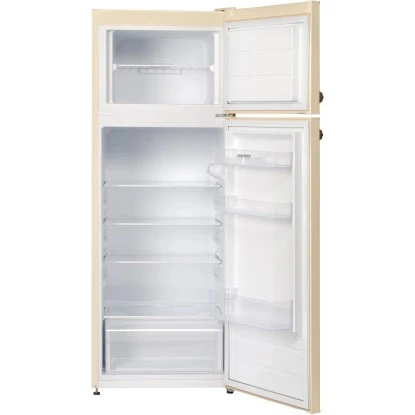 Die Respekta Kühl-/Gefrierkombination KS144 Vintage VC in Cream überzeugt vor allem durch ihre Funktionalität. Das Gerät besitzt neben einem Kühlinhalt von 171 Litern einen Nutzinhalt des Gefrierfachs von 42 Litern. Somit finden nicht nur Ihre frischen Lebensmittel und Getränke genügend Platz, sondern auch Vorräte, die tiefgefroren sind. Zusätzlicher Komfort wird durch verstellbare Füße, einen wechselseitigen Türanschlag, LED-Beleuchtung im Kühlraum oder auch dem automatischen Abtauverfahren im Kühlteil erreicht.
