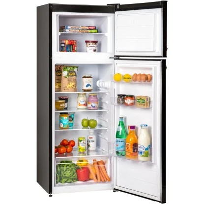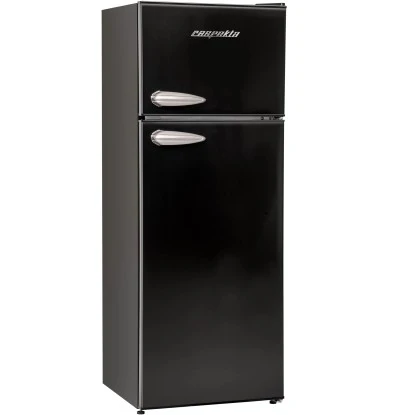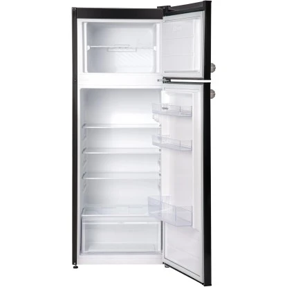 Die Respekta Kühl-/Gefrierkombination KS144 Vintage VC in Schwarz überzeugt vor allem durch ihre Funktionalität. Das Gerät besitzt neben einem Kühlinhalt von 171 Litern einen Nutzinhalt des Gefrierfachs von 42 Litern. Somit finden nicht nur Ihre frischen Lebensmittel und Getränke genügend Platz, sondern auch Vorräte, die tiefgefroren sind. Zusätzlicher Komfort wird durch verstellbare Füße, einen Türanschlag, LED-Beleuchtung im Kühlraum oder auch dem automatischen Abtauverfahren im Kühlteil erreicht.