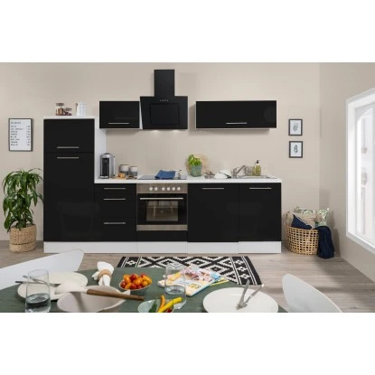 Respekta Premium Küchenzeile 280 Cm Schwarz Hochglanz-Weiß