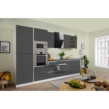 Respekta Premium Küchenzeile Grifflos 335 Cm Grau Hochglanz-Weiß