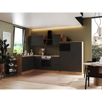 Die Respekta Selection Winkelküche Elisabeth 340 cm bietet Ihnen alles, was Sie erwarten, um Ihren Traum von einer modernen und funktionalen Küche zu verwirklichen. Mit einer Arbeitshöhe von 91 cm und höhenverstellbaren Sockelfüssen ermöglicht sie Ihnen ein komfortables und ergonomisches Kochen. Dank der Schubkästen und Auszüge mit Vollauszug und Dämpfung, sowie der Glaseinlegeböden bei den Hängeschränken können Sie den Stauraum optimal ausnutzen. Profitieren Sie von der Lieferung fertig montierter Küchenschränke und erhalten Sie eine leistungsstarke und moderne Küchenlösung, die Sie über viele Jahre hinweg begleiten wird.