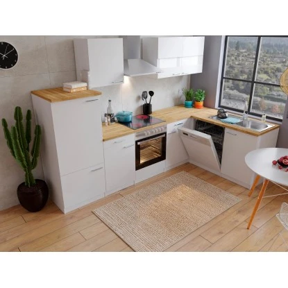 Die Respekta Winkelküche KBL280WWCG ist die ideale Küche für Familien. Der matt-weiße Korpus sowie die weißen Fronten machen die Küchenzeile zu einem absoluten Blickfang. Die Arbeitsplatte in Nussbaum Butcher bildet einen schönen Abschluss.