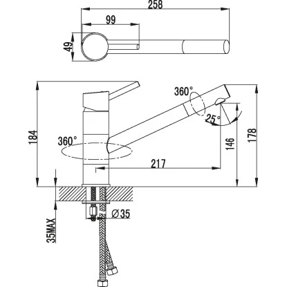 | Anschlussart | Standardarmatur (mit 2 Anschlüssen) |