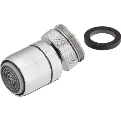 Der Strahlregler Perlator® Cascade® SLC® AC Eco, mit Kugelgelenk, ist eine bewegliche Mischdüse für den Wasserhahn, in Bad und Küche. Durch ständige Beimischung von Luft formt sich ein gleichmäßiger Strahl. Er verfügt über ein Gewinde M22. Für einen universellen Anschluss dient ein Übergangsstück auf Außengewinde M24. Der Wassersparer ist aus verchromtem Messing gefertigt. Er ist mit einer Wassersparfunktion ausgestattet. Durch das bewegliche Kugelgelenk, lässt sich der Strahl mit weitem Aktionsradius schwenken.