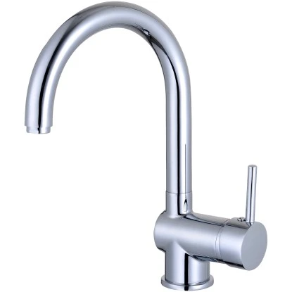 Die Verosan Küchenarmatur Prag Niederdruck Rund Chrom überzeugt durch den hohen gebogenen Auslauf und seitlich angebrachten Hebel. Mit der komfortablen Höhe wird das Befüllen von Töpfen ein Kinderspiel. Da es sich beim Einhebelmischer um eine Niederdruckarmatur handelt, wird sie für drucklose Warmwasserspeicher wie Boiler oder Untertischgeräte eingesetzt. Diese formschöne Armatur ist für die Montage auf einer Küchenspüle geeignet. Durch die Bedienbarkeit mit einer Hand kann bequem die Durchflussmenge und die Temperatur geregelt werden.