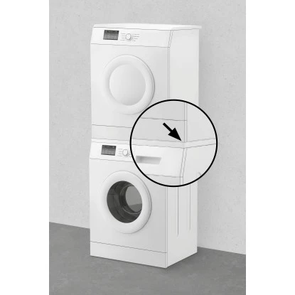 Der Waschmaschinen-Verbindungsrahmen wird auf der Waschmaschine platziert und ermöglicht das Hinaufstellen einer weiteren Waschmaschine oder eines Trockners. Diese Kombinationsmöglichkeit ermöglicht einem platzsparend seine Geräte aufzustellen.
