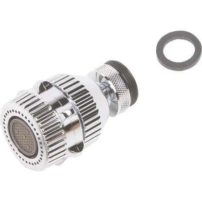 Die Wasserspar-Küchenbrause mit Gelenkfunktion lässt sich in jeden handelsüblichen Wasserauslauf einschrauben und ersetzt eine verbrauchte oder defekte Geschirrbrause. Das Material ist verchromtes Messing. Die Brause ist chromfarben. Sie besitzt die Anschlussgröße M22x1/M24x1 und ist kompatibel mit den Gewinden M22 und M24. Dank des integrierten Drehrings, lassen sich Durchflussmenge und Wasserstrahl regeln und damit Wasser sparen. Zudem verfügt die Geschirrbrause über einen Kalkschutz. Im Lieferumfang sind die Küchenbrause und eine Anschlussdichtung enthalten.